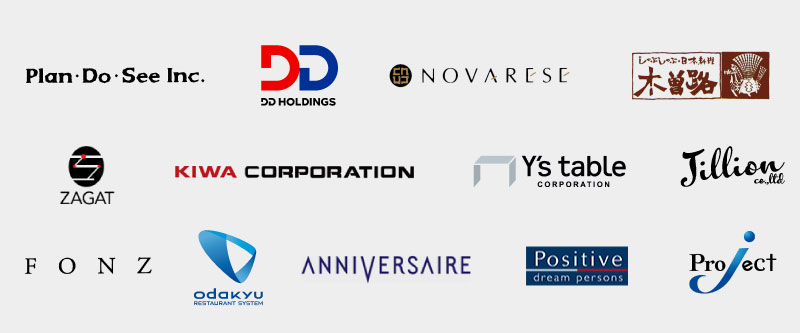 参加企業 Plan・Do・See/DDホールディングス/ノバレーゼ/木曽路ザガット/KIWAコーポレーション/小田急レストランシステム/アニヴェルセル/JILLION/フォンス/ぎょうざの満洲/ポジティブドリームパーソンズ/ナッティースワンキー/ファイブグループ/ワイズテーブルコーポレーション/プロダクトオブタイム/ジェイプロジェクト/ワンダーテーブルほか多数
